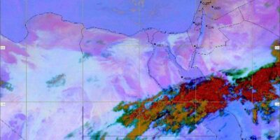 نشرت هيئة الأرصاد الجوية صور الأقمار الصناعية التي توضح استمرار تدفق السحب المنخفضة والمتوسطة على بعض مناطق جنوب الصعيد وسلاسل جبال البحر الأحمر، ومعها فرص لسقوط الأمطار في بعض المناطق، ومن المتوقع أن تستمر هذه الفرص خلال الليل حتى غدٍ الأحد.