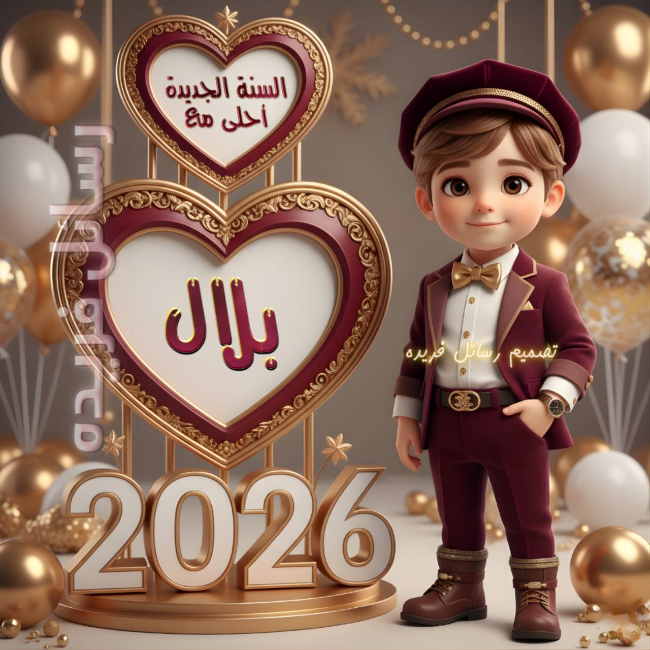 أكتب أسمك علي صور تهنئة رأس السنة الميلادية 2026 الجديدة